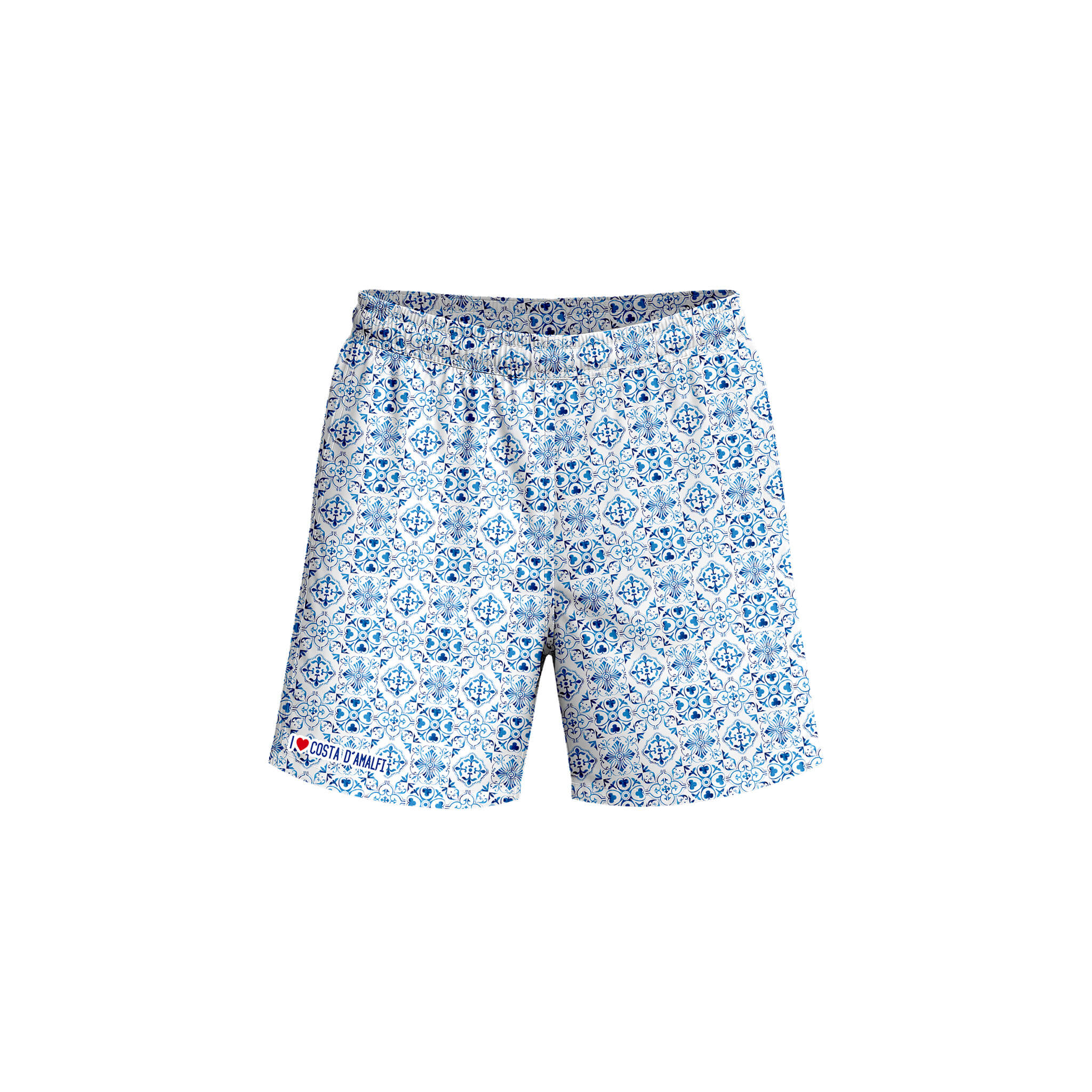 costume a bermuda con elastico in vita, laccetto regolabile, tasche america e spacchetti laterali. Il costume è dotato di morbida ed elastica retina interna