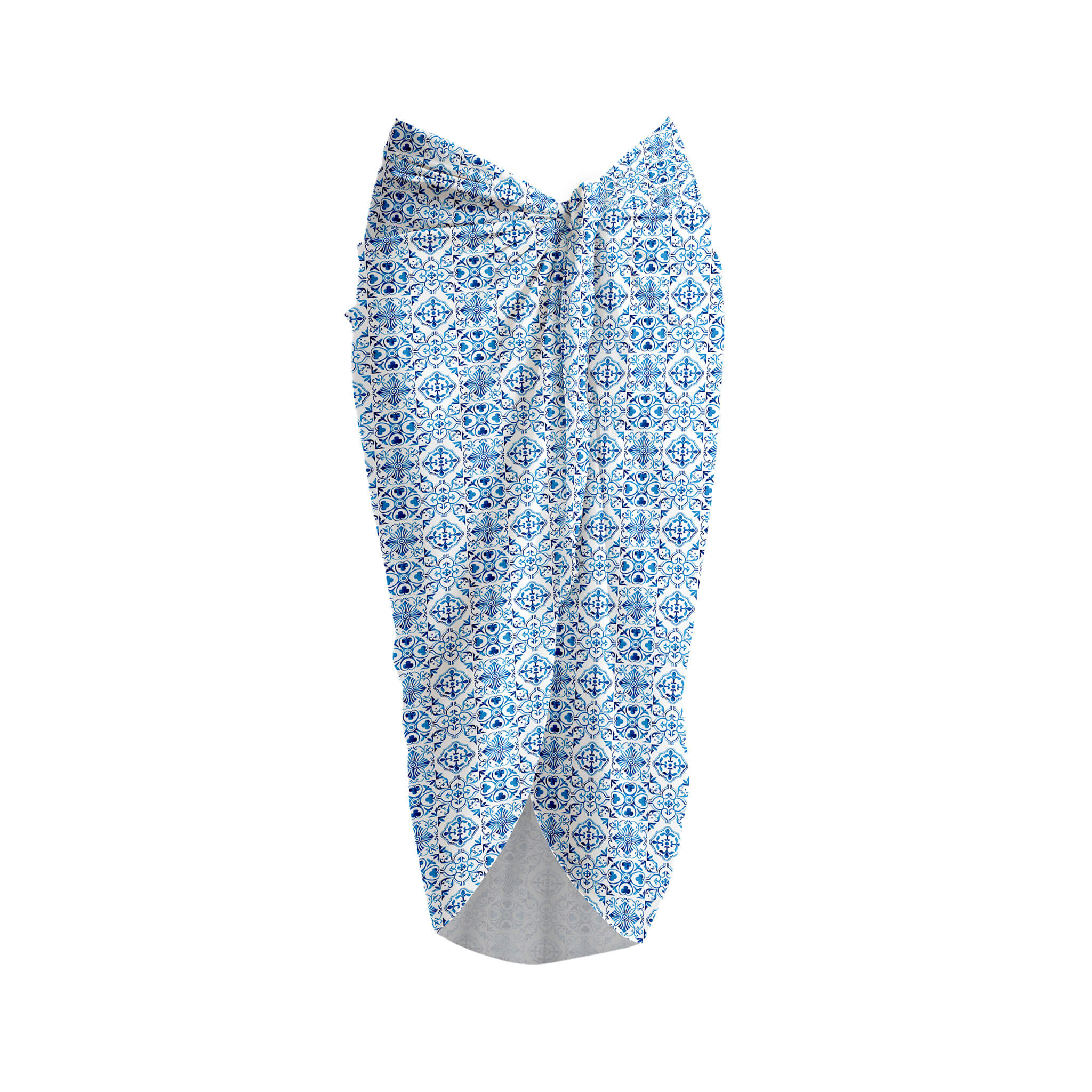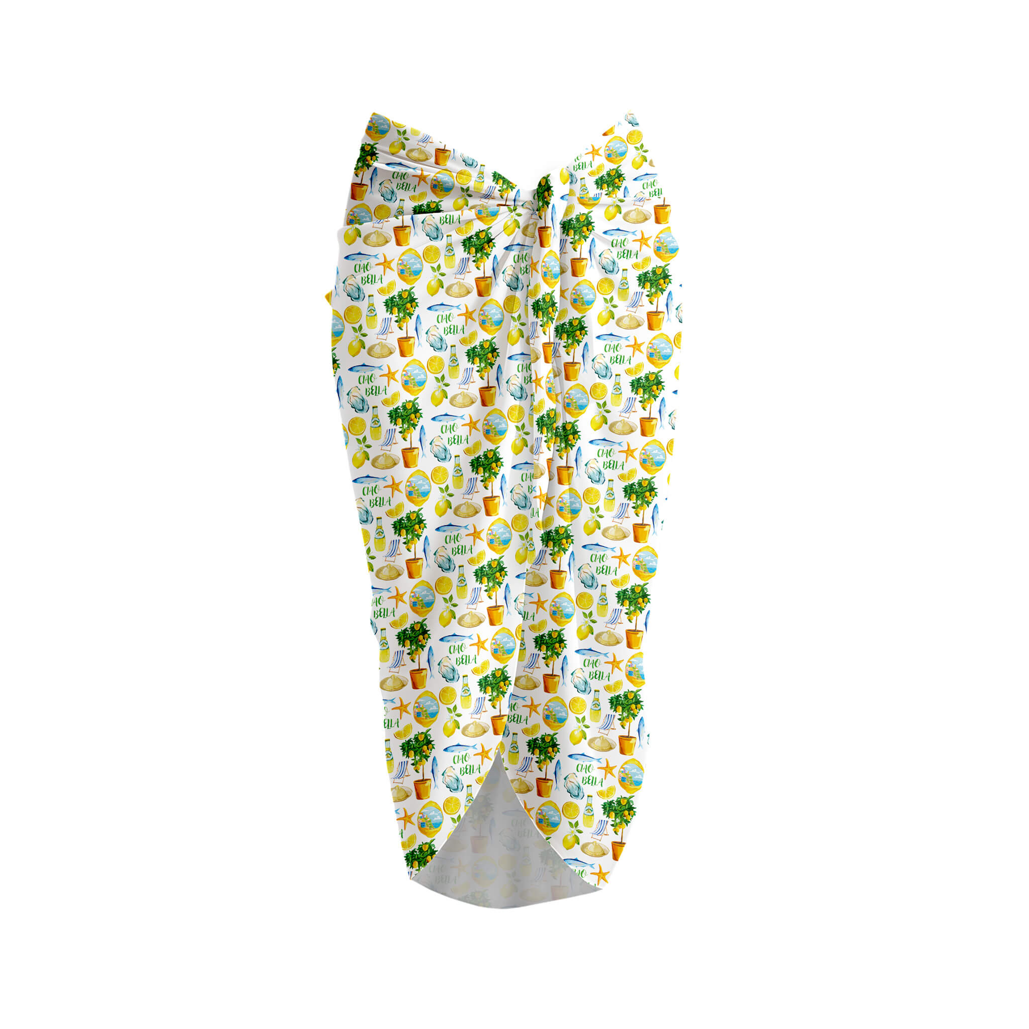 gonna in tessuto elasticizzato, disponibile in varie stampe. La gonna presenta un’asola sul fianco all’interno della quale viene inserito il cinturino per un’ottimale chiusura.