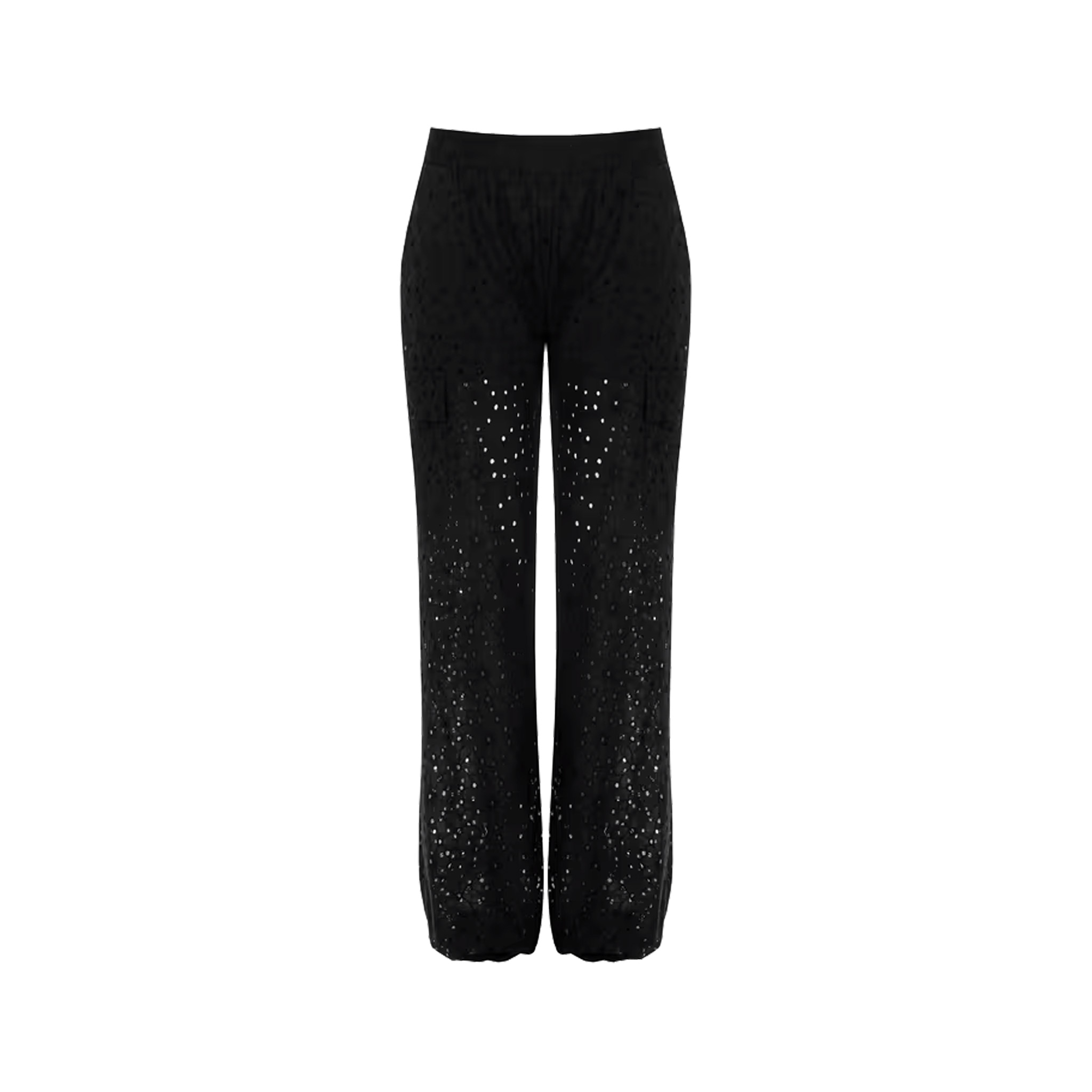 pantalone a vita alta con elastico. Il pantalone presenta una coulotte interna elasticizzata