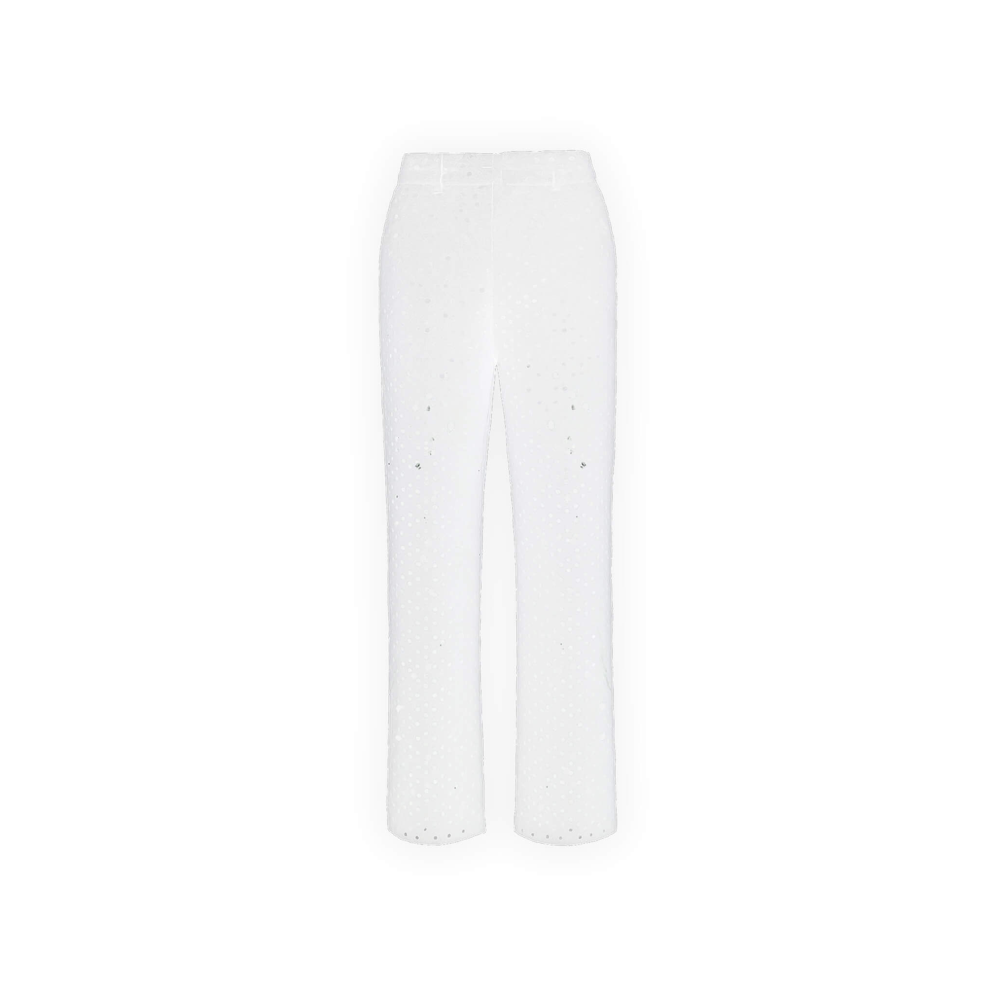 pantalone con elastico in vita, tasca America sul davanti e tasca a friso sul retro, vestibilità comoda.